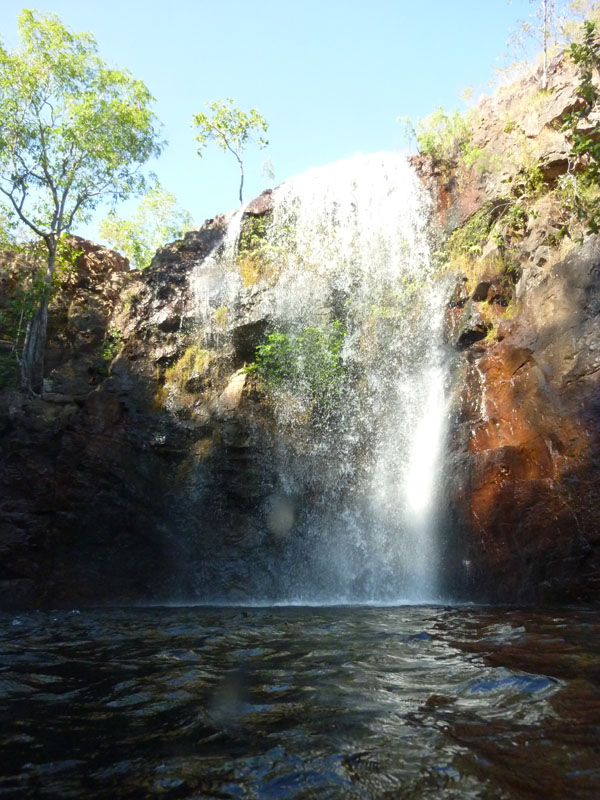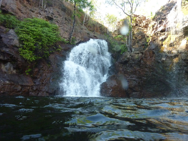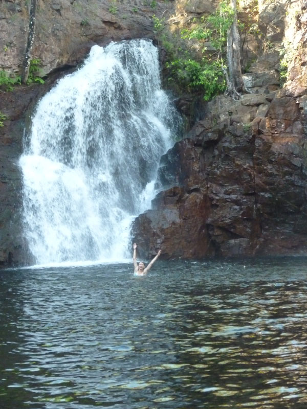 Wangi Falls, ahhh… ca y est, on voit de vraies chutes d’eau du Litchfield Park !! Je prépare le boitier étanche de l’appareil photo et me voilà partie pour quelques photos dans l’eau pour aller prendre les chutes d’eau d’un peu plus près ! Que du bonheur !!